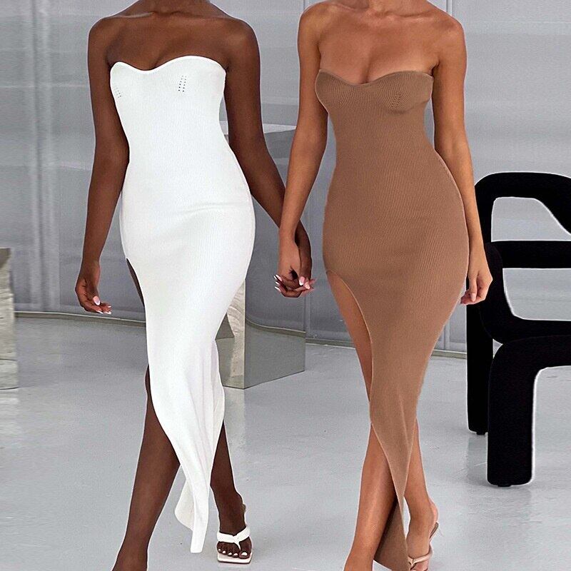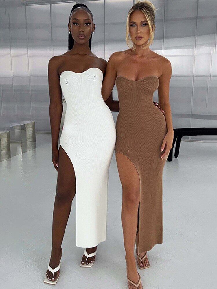 送料無料 Mozision ストラップレス太ももスプリットマキシドレス女性ガウン夏オフショルダー背中の開いたボディコンセクシーなロングドレス Vestidos サマー 夏物 AE121288836270612972
