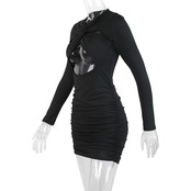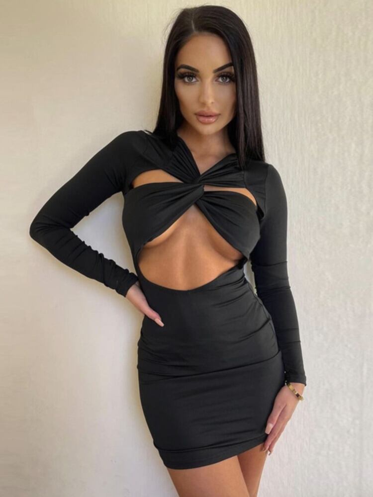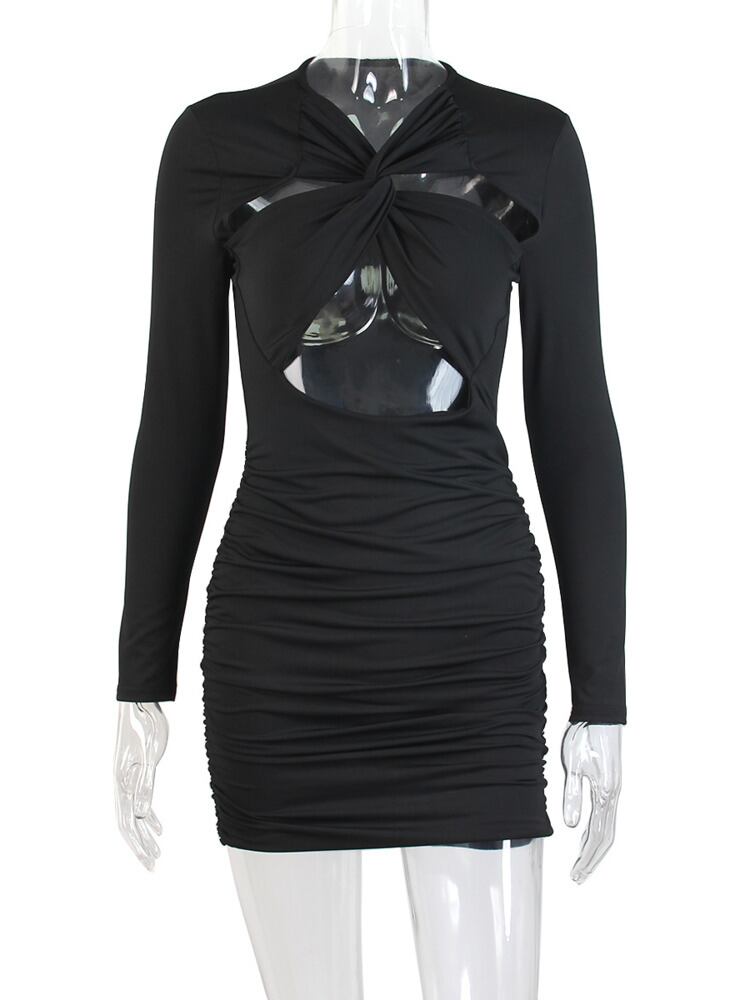 送料無料 Mozision 2022 秋中空アウトミニドレス女性ローブ黒長袖ボディコンシャーリングショートドレス Vestido ロング ブラック オータム 秋物 AE12128883517073836