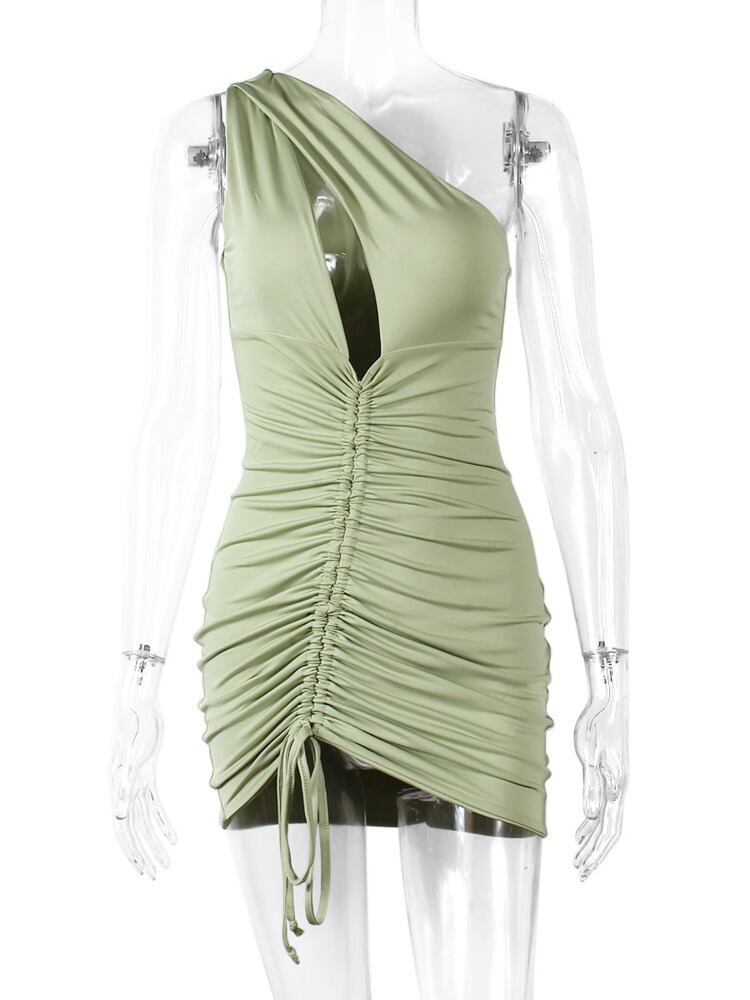 送料無料 Mozision バックレスシャーリングミニドレス女性の服セクシーな中空アウト斜めネックドレスクラブパーティー巾着ローブ Vestido AE121288884168960041