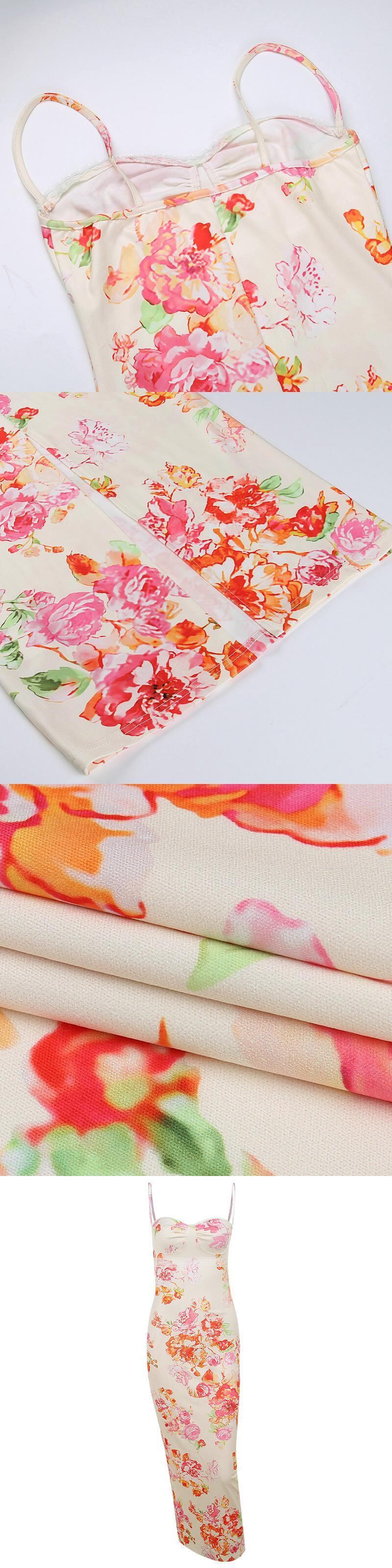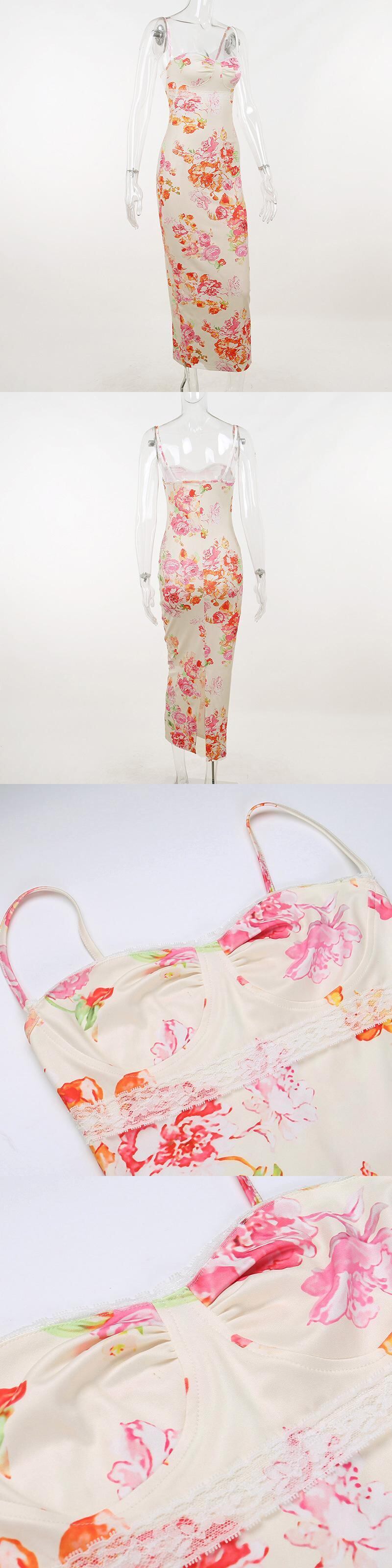 送料無料 Mozision スパゲッティストラップ花柄ミディドレス女性ローブ夏オフショルダー背中の開いたノースリーブプリントロングドレス サマー 夏物 AE121288813521931557
