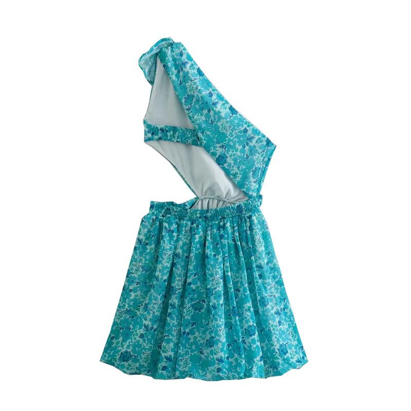 送料無料 Mozisionワンショルダープリントミニドレス女性の2023年夏ホローアウトバックレスノースリーブボディコンショートプリントドレス サマー 夏物 AE121288899129027388