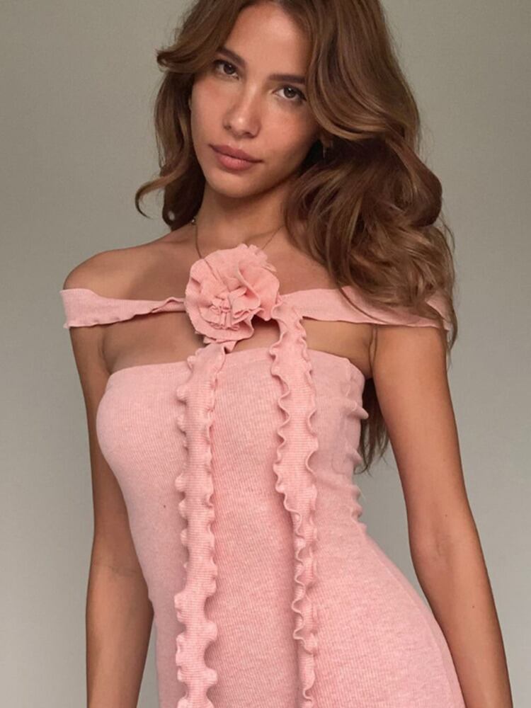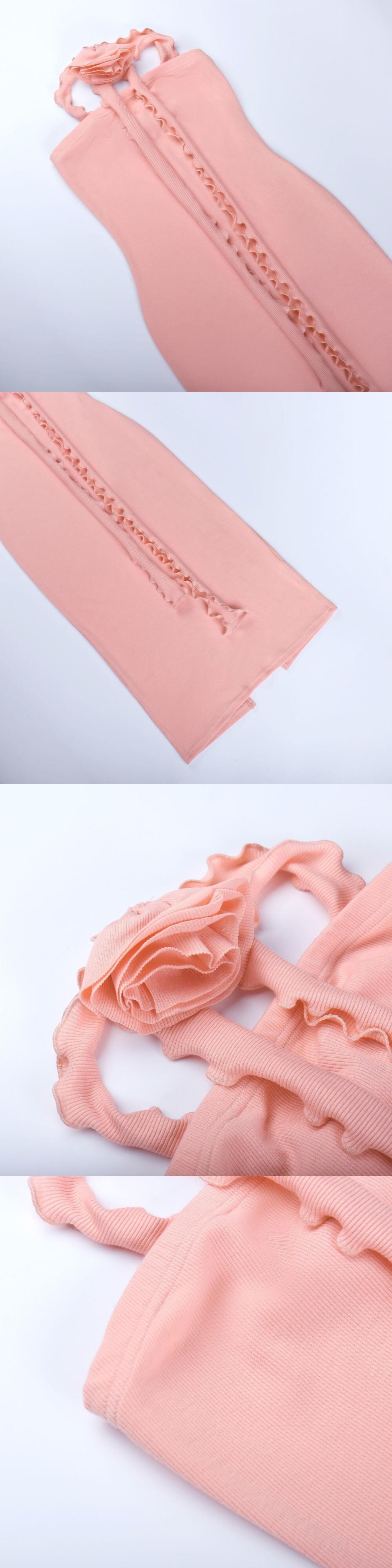 送料無料 Mozision ネクタイ花ホルター背中の開いたミディドレスの女性の夏のストラップレスの背中の開いたボディコンセクシーなロングドレス Vestidos サマー 夏物 フラワーデザイン AE121288852177050657