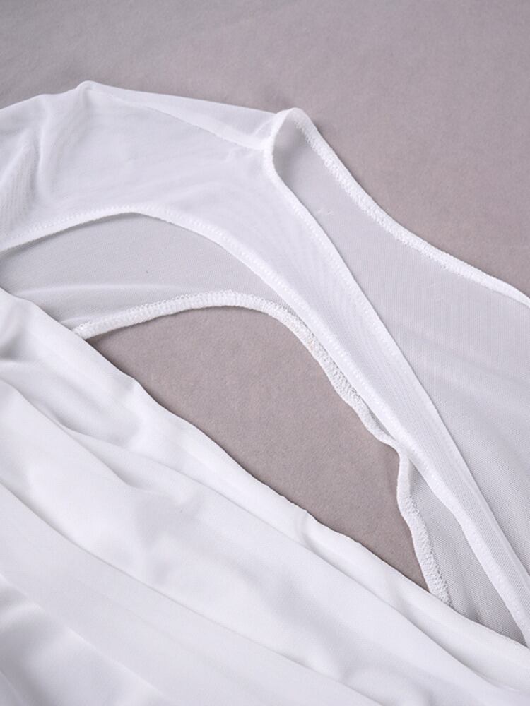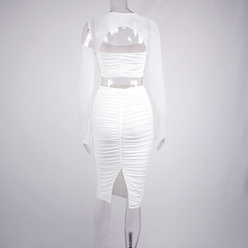 送料無料 Mozision 2 層メッシュセクシーなドレスセット女性の衣装ホワイトクロップトップとスカートマッチングセット中空アウトパーティー 2 点セット AE121288840531604335
