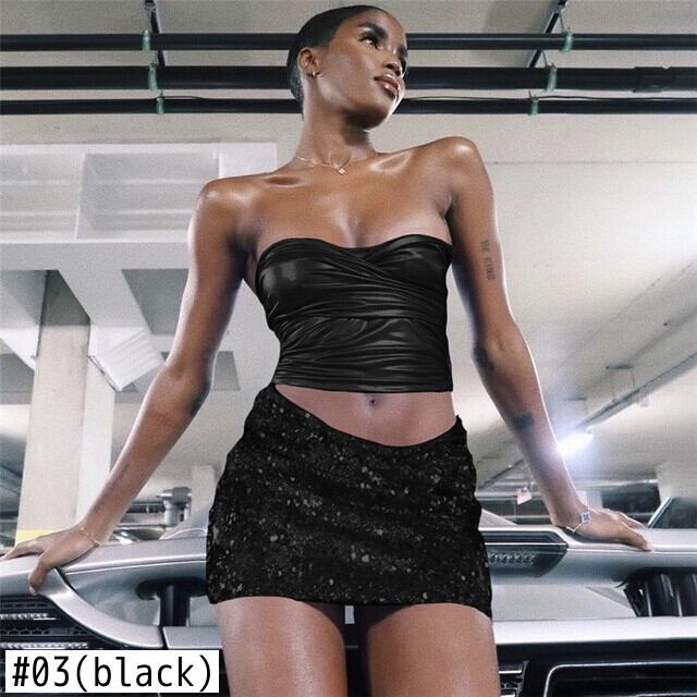 送料無料 Mozision スパークルドレスセット女性衣装ストラップレスクロップトップとミニスカートマッチングセット夏のセクシーなパーティー 2 点セット サマー 夏物 AE121288826507914763
