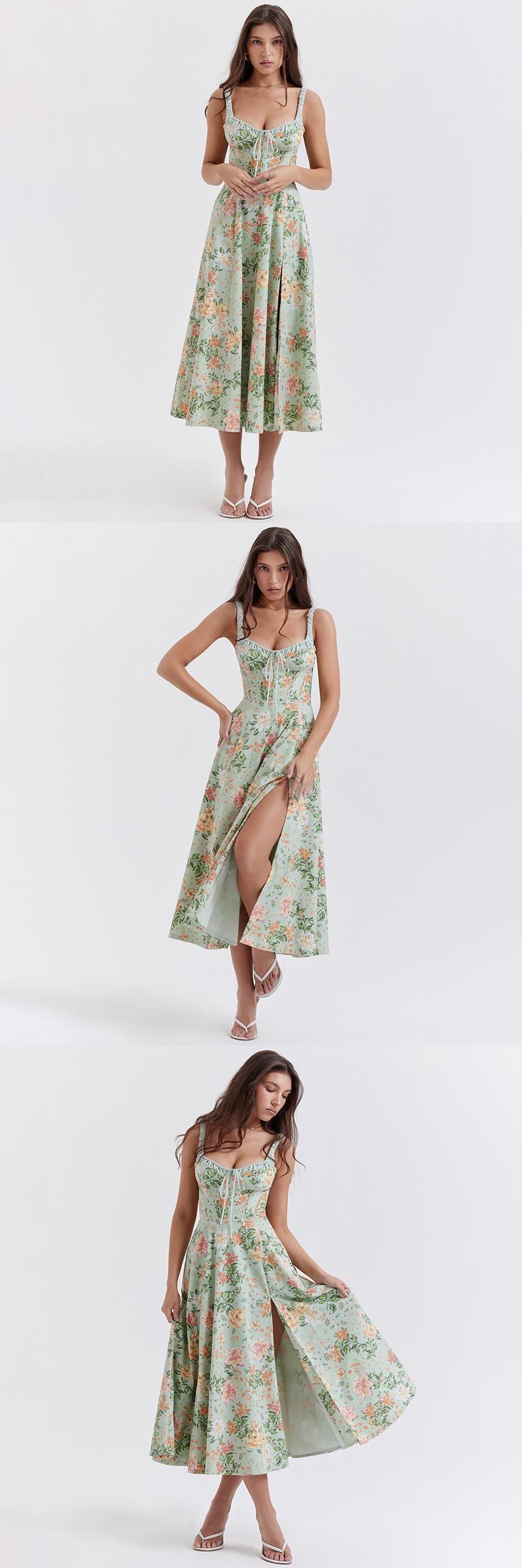送料無料 Mozision スパゲッティストラップ花柄ミディドレス女性ローブ夏ノースリーブ背中 A ラインロングプリーツドレス サマー 夏物 Aライン AE121288865616847314 | 女性の為の通販サイト-fashion navi