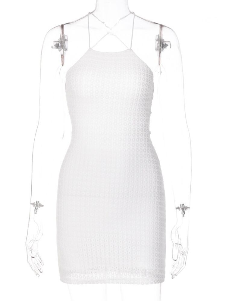 送料無料 Mozision ホワイト背中の開いたセクシーなミニドレス女性ローブ 2023 夏ホルターレースアップボディコンショートドレス Vestidos サマー 夏物 AE121288840381424975