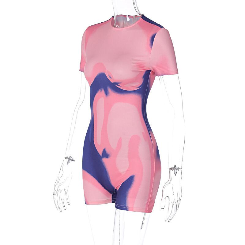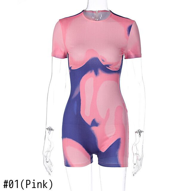 送料無料 Mozision 絞り染めプリント遊び着女性オーバーオール O ネック半袖スキニー & ロンパース ショート ハーフスリーブ Oネック AE121288821453704405