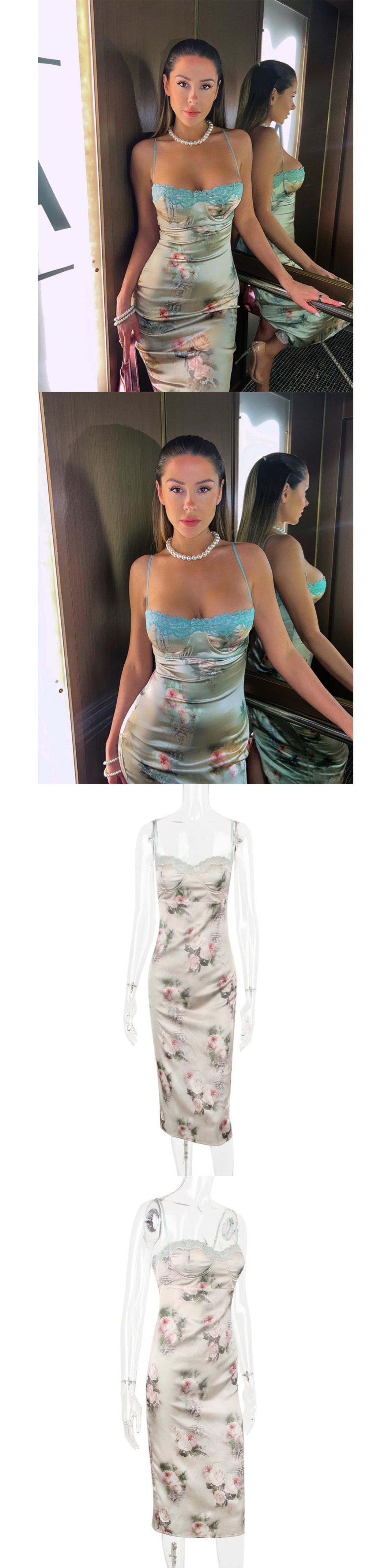 送料無料 Mozision スパゲッティストラップレースプリントミディドレス女性ローブストラップレスバックレスウエストボディコンクラブパーティーロングドレス AE121288810512266369 | 女性の為の通販サイト-fashion navi
