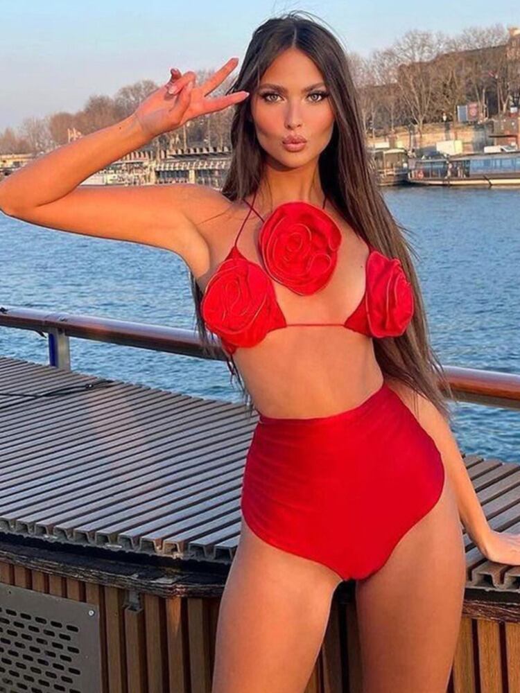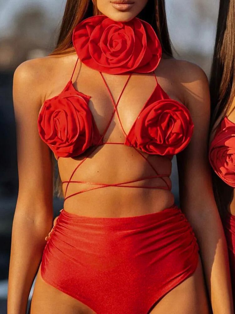 送料無料 Mozision 赤花ビキニセット女性の夏のビーチホリデービキニ 2 点セットセクシーなパーティー花柄セット衣装 レッド サマー 夏物 フラワーデザイン AE121288835778050524