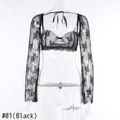送料無料 Mozision レース長袖クロップトップ女性黒プリント背中 Tシャツ夏ストラップレスのセクシーなクラブパーティーショートトップス服 ロング ブラック サマー 夏物 AE121288830379524779
