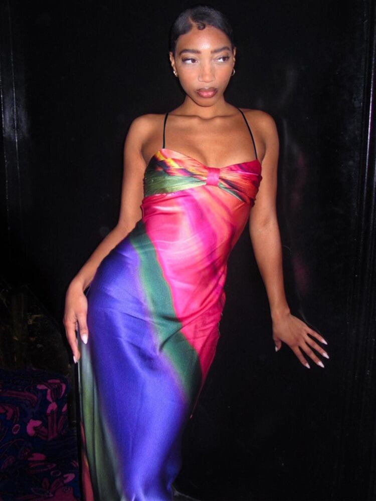 送料無料 Mozision スパゲッティストラッププリントマキシドレス女性ガウン夏ノースリーブ背中の開いたセクシーなプリント床の長さのドレス Vestidos サマー 夏物 AE121288815113999944 | 女性の為の通販サイト-fashion navi