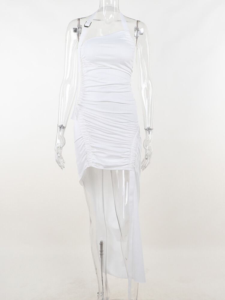送料無料 Mozision 不規則なシャーリングセクシーなミニドレス女性ローブ夏ホルターノースリーブ背中クラブパーティードレス Vestidos サマー 夏物 AE121288871245480614