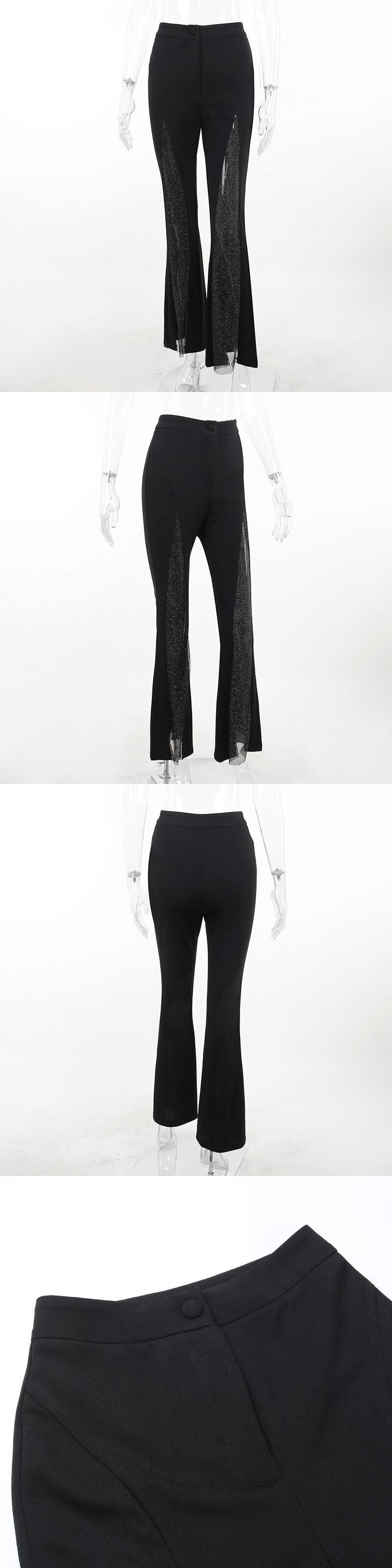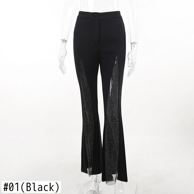 送料無料 Mozision スパークルダイヤモンドロングパンツ女性シースルーセクシーなフレアパンツスリムウエストズボンストリート AE121288820840123686