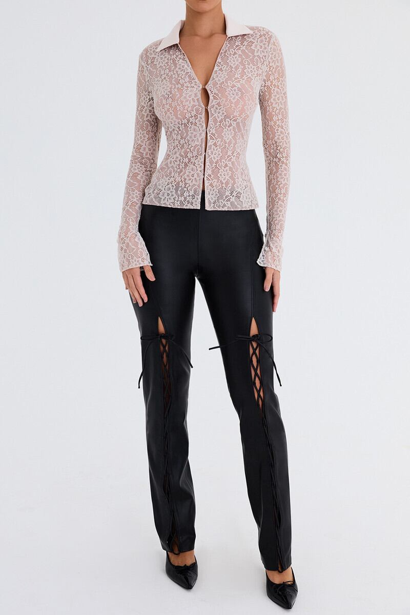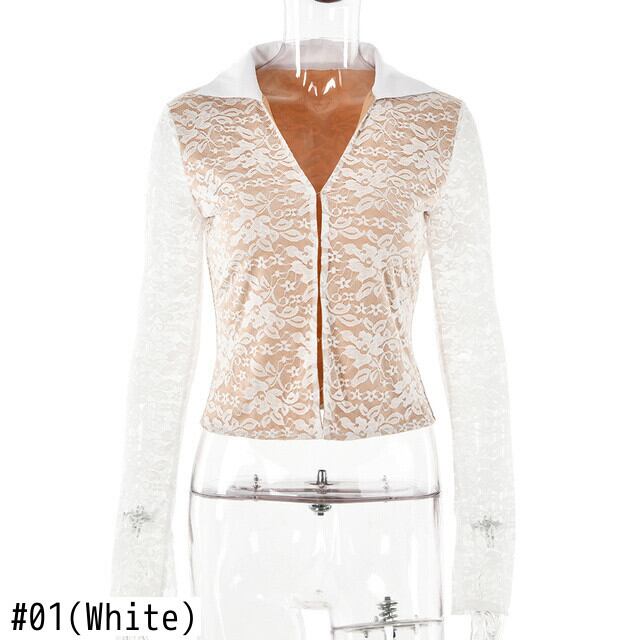 送料無料 Mozision ストレッチレースフレアスリーブ Tシャツ女性ターンダウン襟シングルブレスト Tシャツカーディガンセクシーなスキニー Tシャツ AE121288845638477186