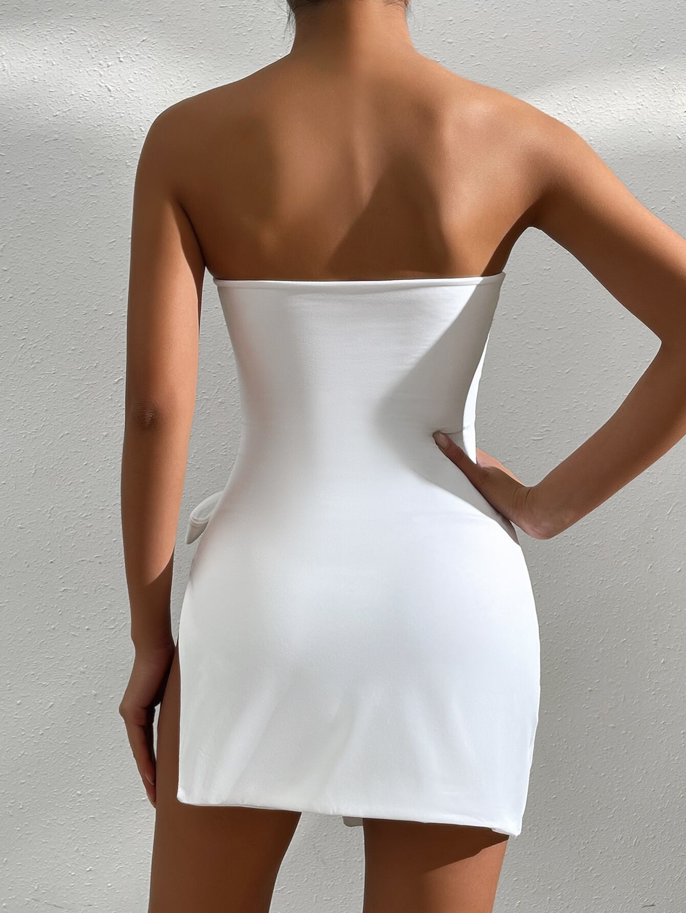 送料無料 Mozision 中空アウトレースアップセクシーなミニドレス女性ローブ夏ストラップレスオフショルダー背中の開いたスプリットセクシーなドレス Vestidos サマー 夏物 AE121288834284774945