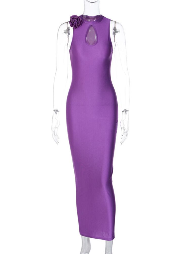 送料無料 Mozisio 中空アウトネクタイ花マキシドレス女性の夏の O ネックノースリーブボディコンロングタンクドレスセクシーなクラブパーティー Vestidos サマー 夏物 Oネック フラワーデザイン AE121288835221066947