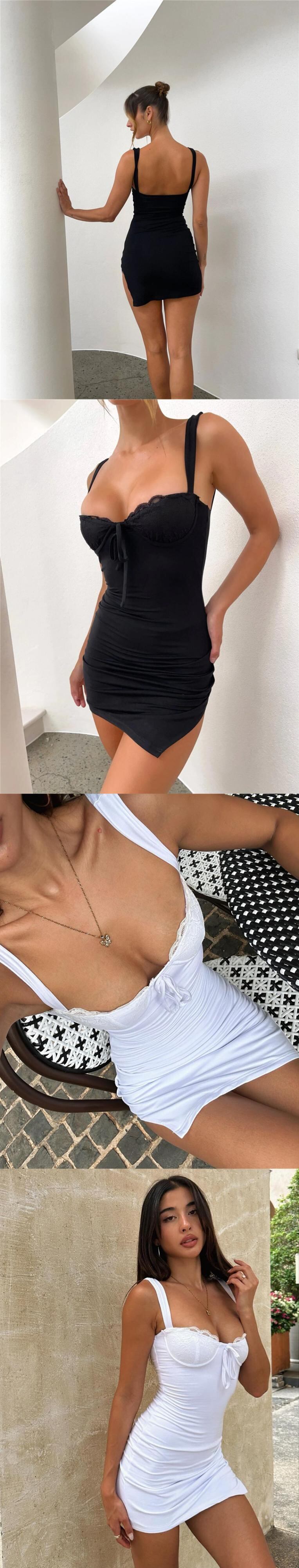 送料無料 Mozision レース胸スパゲッティストラップミニドレス女性ローブレースアップノースリーブバックレスショートドレスセクシーなパーティードレス AE121288897723323241 | 女性の為の通販サイト-fashion navi