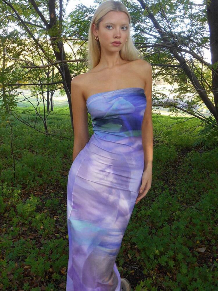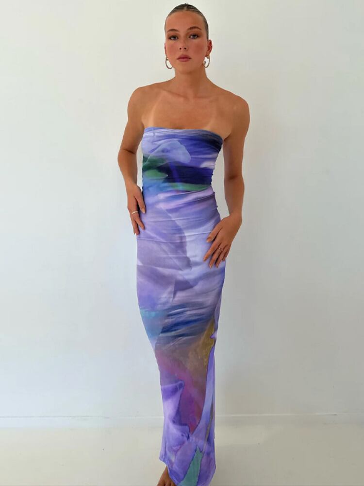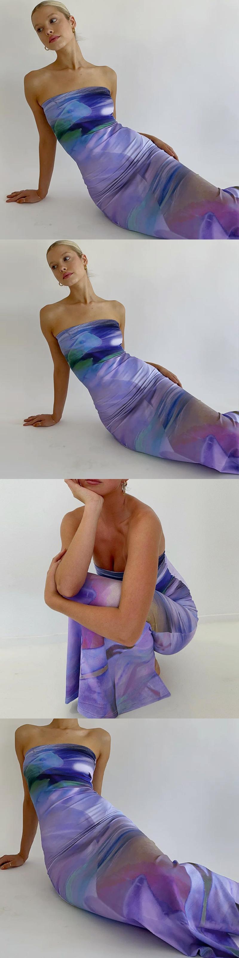 送料無料 Mozision ストラップレスバックレスプリントマキシドレス女性ローブ夏紫オフショルダーボディコンセクシーなパーティーロングドレス Vestidos サマー 夏物 パープル AE121288848385114799