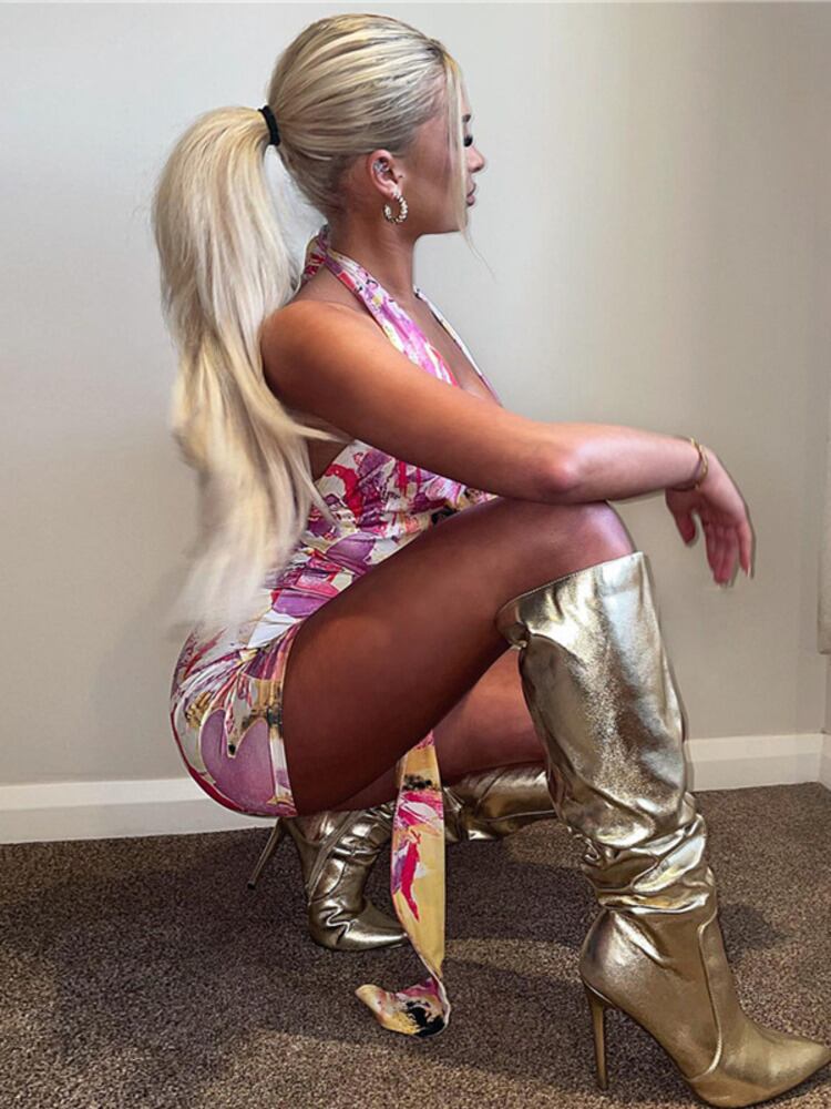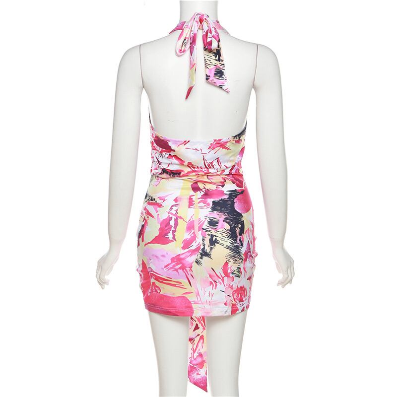送料無料 Mozision ホルターディープ V ネックバックレスプリントミニドレス女性の夏のレースアップノースリーブセクシーなプリントショートドレス Vestidos サマー 夏物 Vネック AE121288869327385118