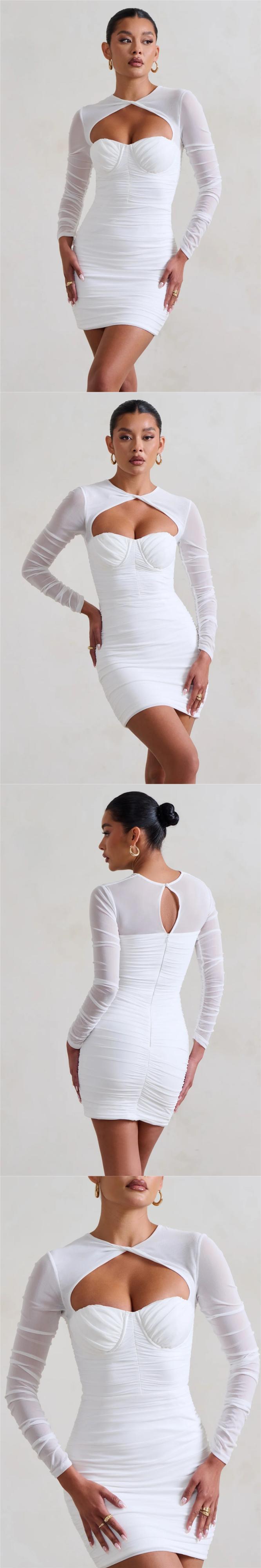 送料無料 Mozision 中空アウトシャーリングセクシーなミニドレス女性ローブ二層メッシュシアースリーブボディコンセクシーなパーティーショートドレス AE121288878099564381