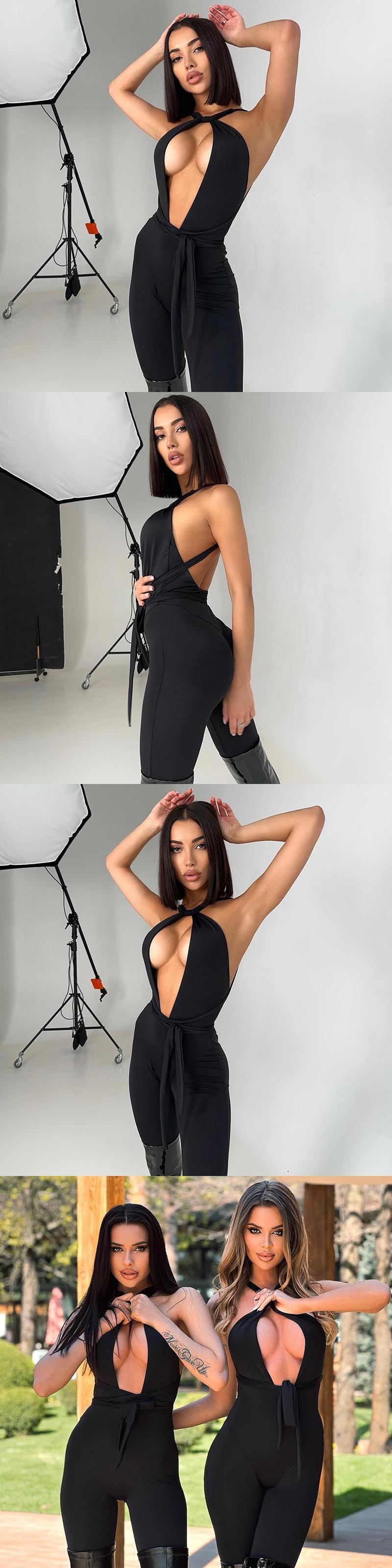送料無料 Mozision ホルター中空アウトセクシーなスキニージャンプスーツ女性オーバーオール 2023 包帯背中の開いたボディコンセクシーなジャンプスーツ鉛筆パンツ AE121288869496412630