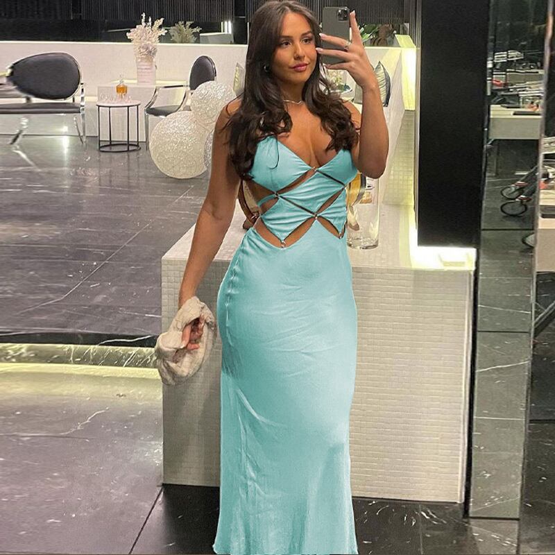 送料無料 Mozision 中空アウトカットアウトマキシドレス女性 2023 スパゲッティストラップノースリーブバックレスボディコンスリップドレス Vestidos AE121288896215235017