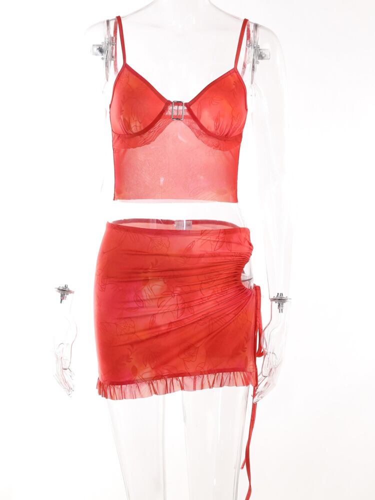 送料無料 Mozision セクシーなプリントツーピースセット女性衣装スパゲッティストラップクロップトップとレースアップミニスカートクラブパーティードレスセット AE121288822942898923