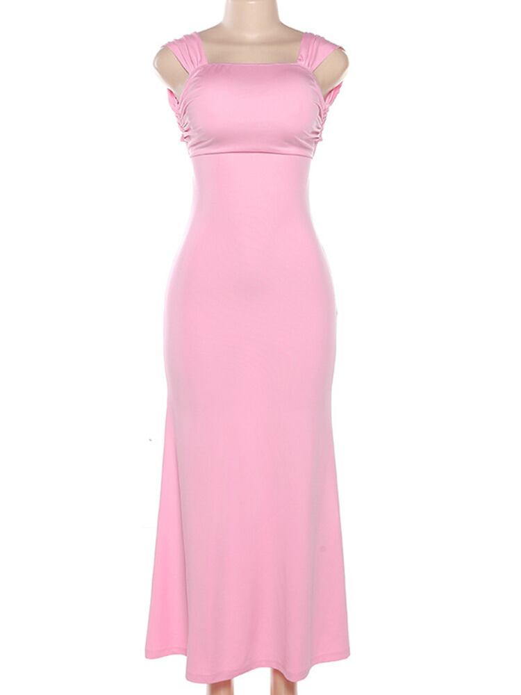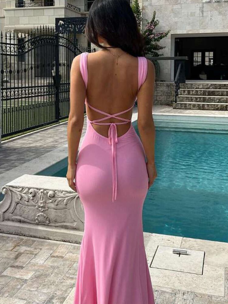 送料無料 Mozision ピンク背中の開いたマキシドレスの女性のガウン 2023 夏ノースリーブ包帯ボディコンセクシーなロングイブニングドレス サマー 夏物 AE121288870107006152