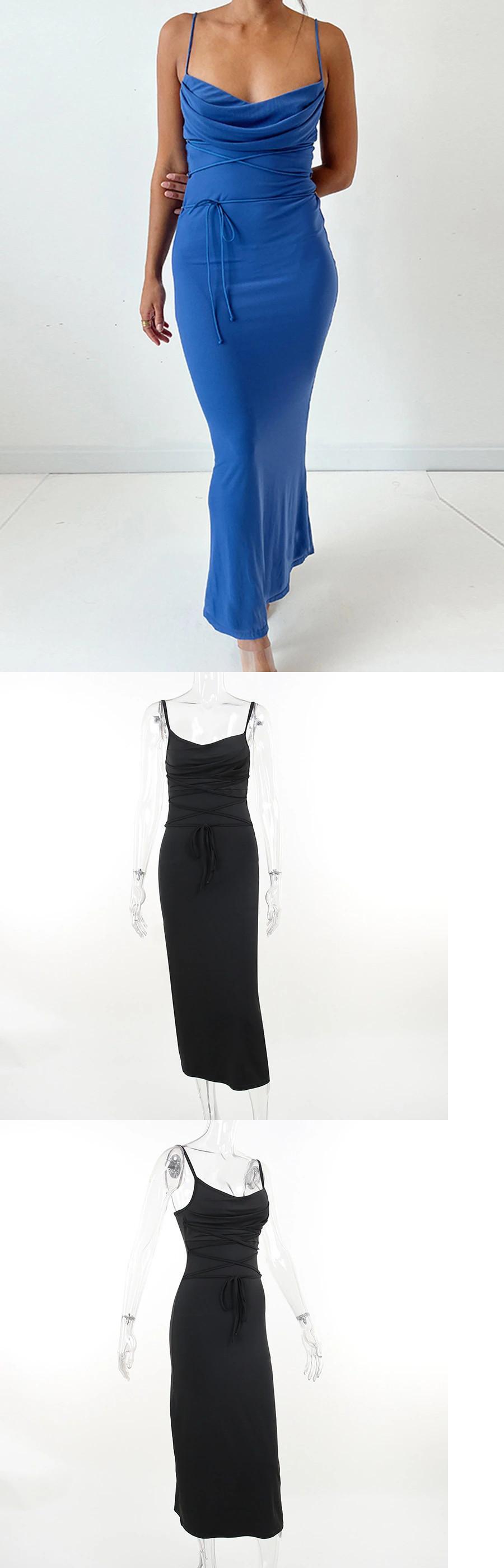 送料無料 Mozision オフショルダーバックレスミディドレス女性ローブ 2023 スパゲッティストラップノースリーブ包帯ボディコンロングドレス Vestidos AE121288818353202292