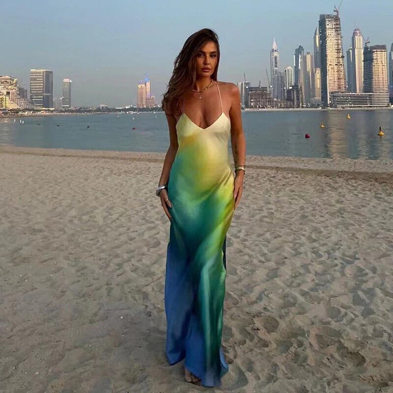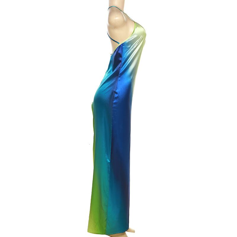 送料無料 Mozision スパゲッティストラップタイダイプリントマキシドレス女性ガウンストラップレスバックレスボディコンセクシーなロングドレス AE121288866623753222