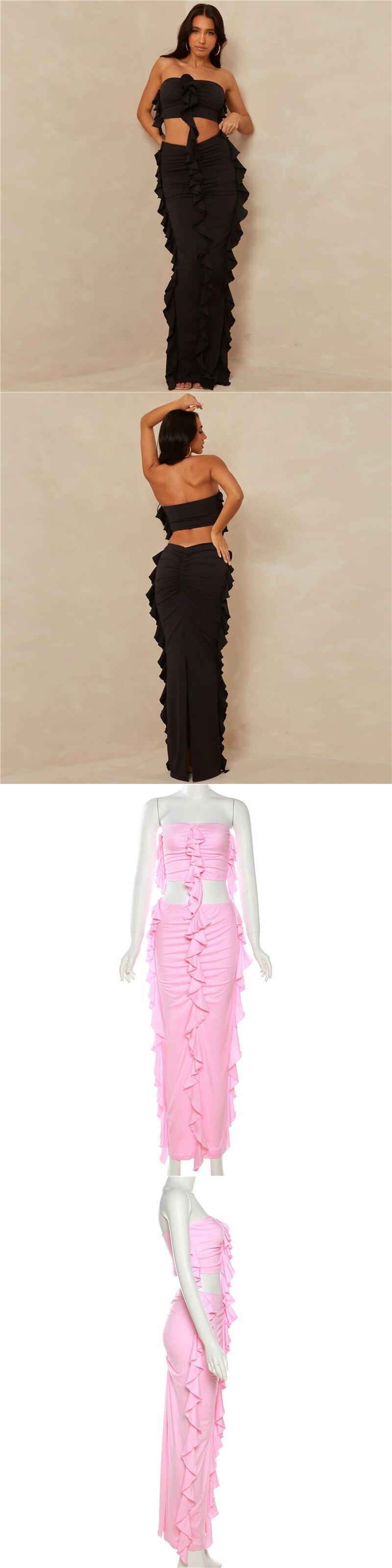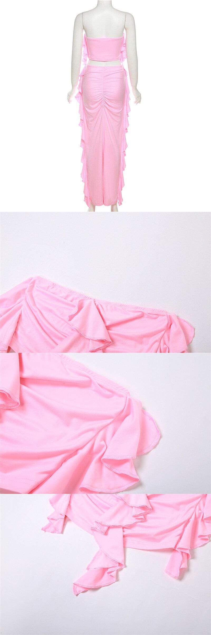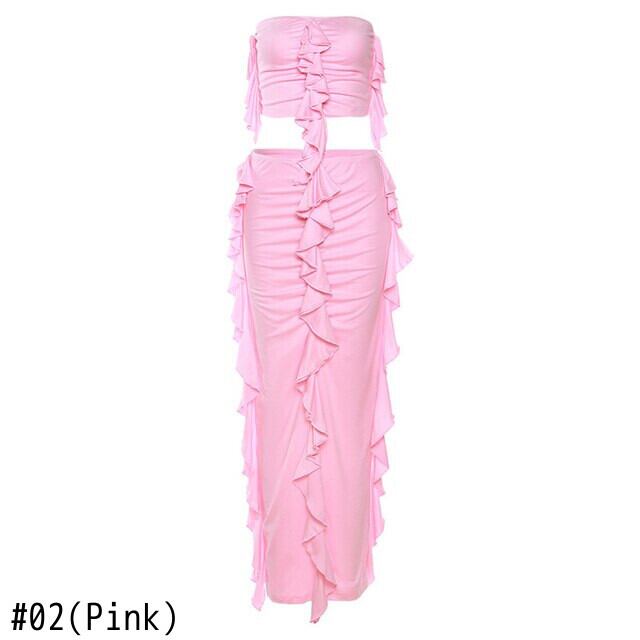 送料無料 Mozision フリルドレスセット女性ストラップレスクロップトップとロングスカートマッチングセットセクシーなツーピースセット AE121288884966451987