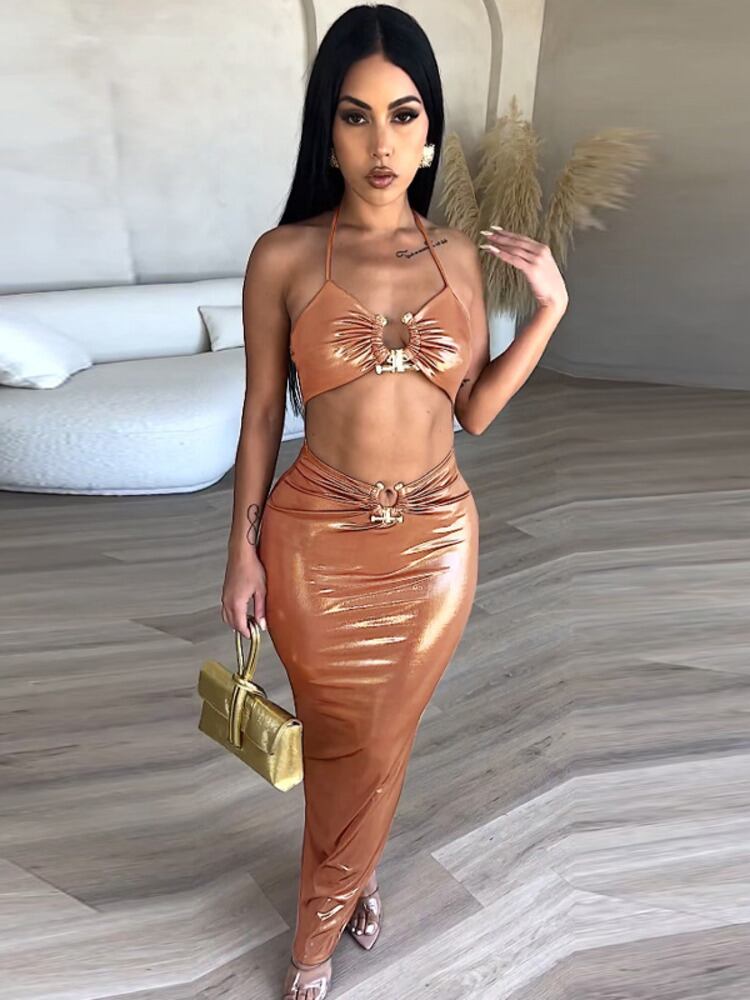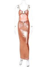 送料無料 Mozision 中空アウトセクシーなマキシドレス女性メタルバックルスパゲッティストラップノースリーブバックレスシャーリングロングドレス Vestidos AE121288822706977452