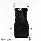 送料無料 Mozision 中空アウト Pu レザーセクシーなミニドレス女性ストラップレスノースリーブ背中の開いたボディコンパーティーショートドレス Vestido AE12128885070340047 | 女性の為の通販サイト-fashion navi