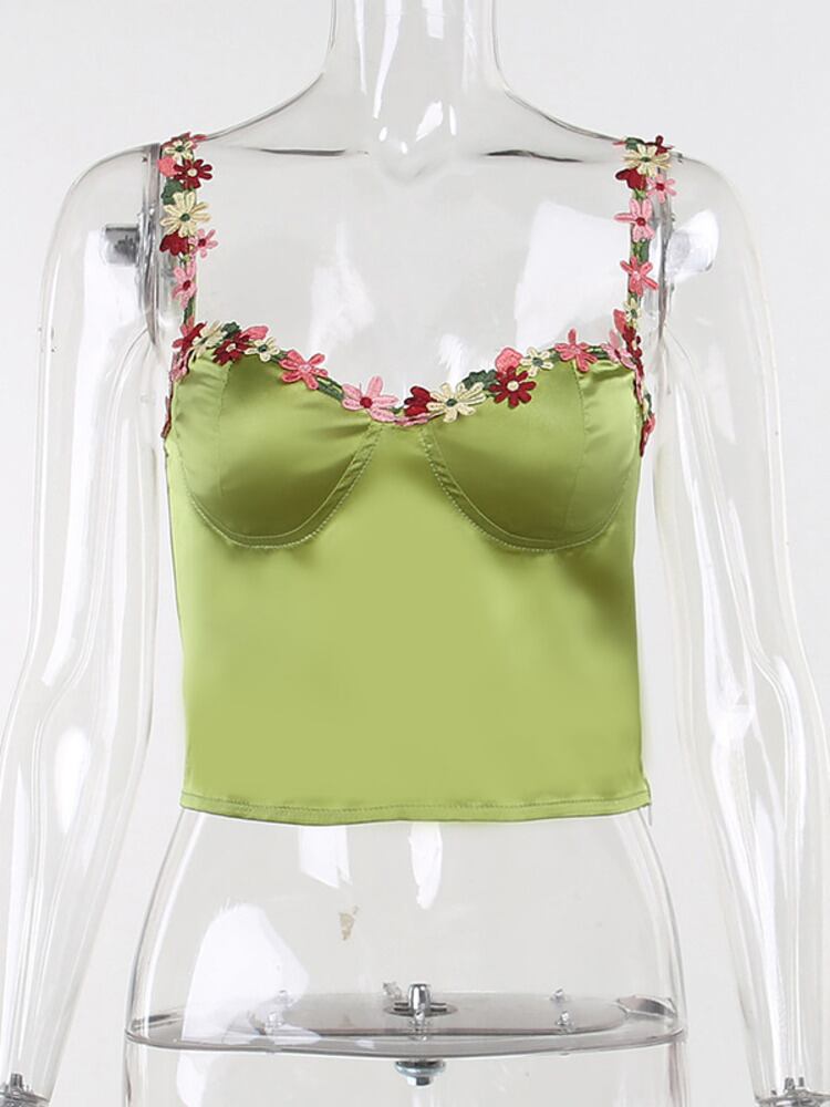 送料無料 Mozision サテン花柄セクシーなクロップトップ女性 2023 夏スパゲッティストラップノースリーブバックレスタンクトップセクシーなキャミソールトップス サマー 夏物 AE121288884784110714
