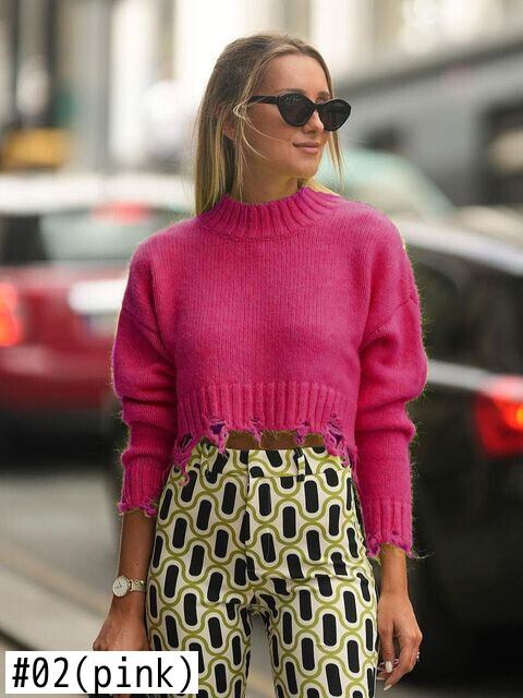 送料無料 暗号秋冬ニット固体クロップドセーター女性プルオーバー長袖セータートップス衣装服 ロング ウィンター 冬物 ソリッドカラー AE123565588714465772134