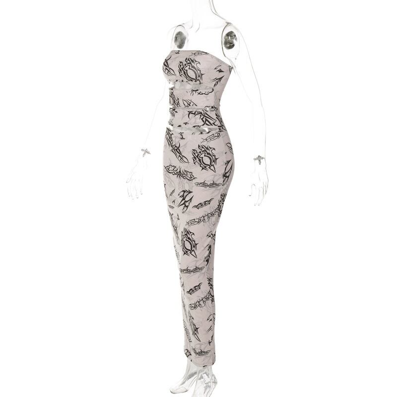 送料無料 暗号オフショルダーセクシーなカットアウトマキシドレスプリント夏服ノースリーブクラブパーティーボディコンドレス サマー 夏物 AE123565588786369990333