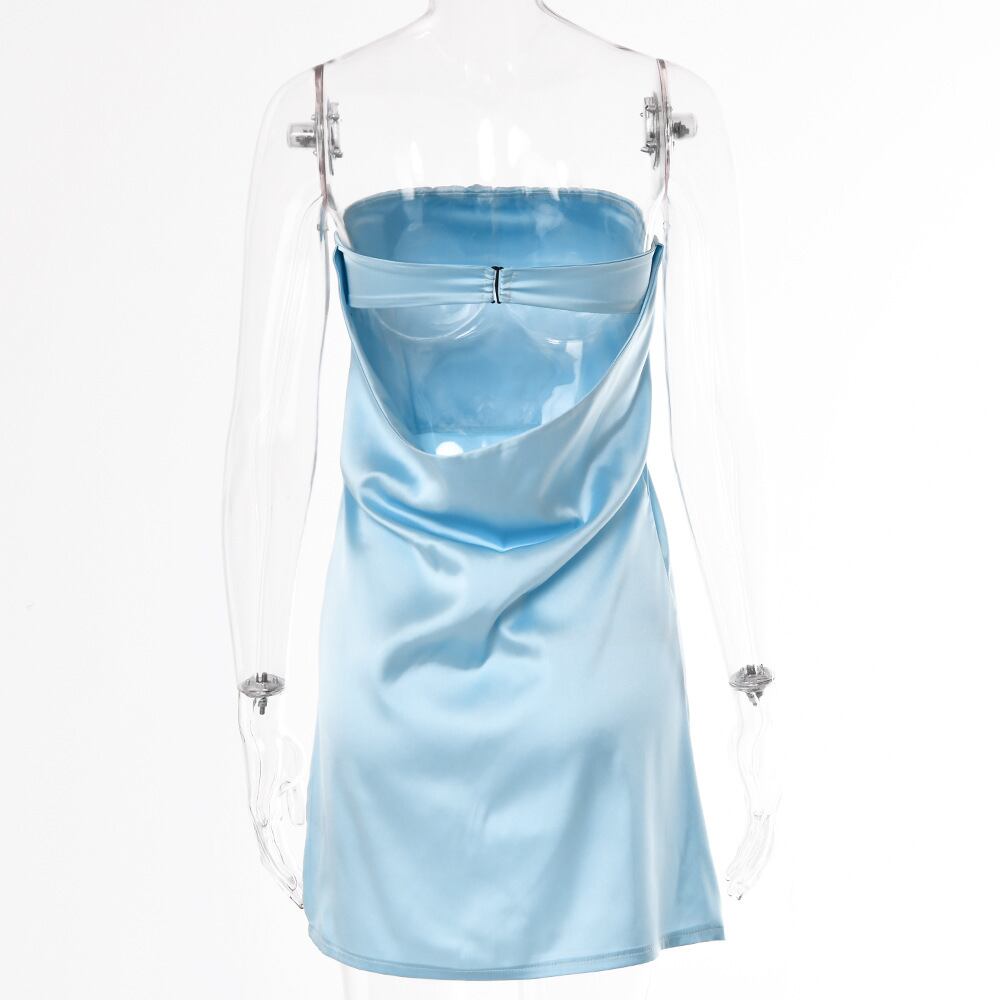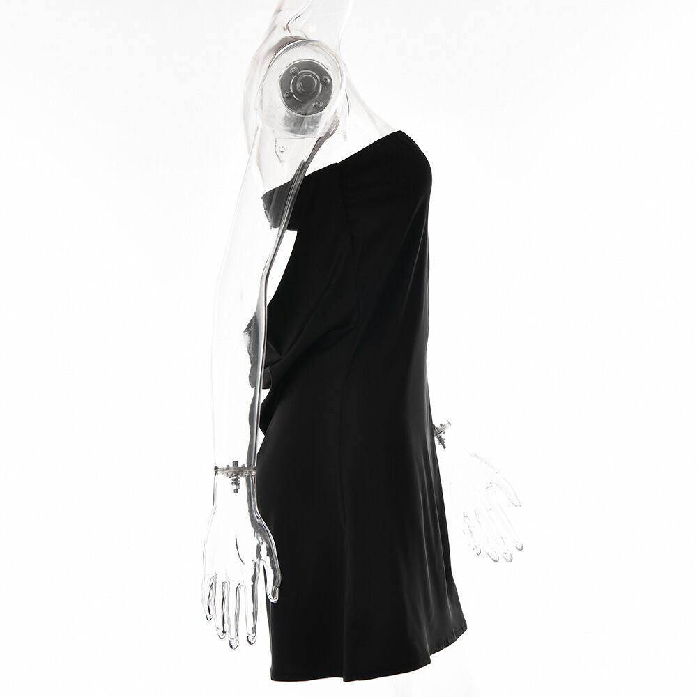 送料無料 暗号サテンホットセクシーな背中の開いたオフショルダーミニドレス女性ノースリーブドレスパーティークラブガウン Vestido 服 AE123565588725311492782