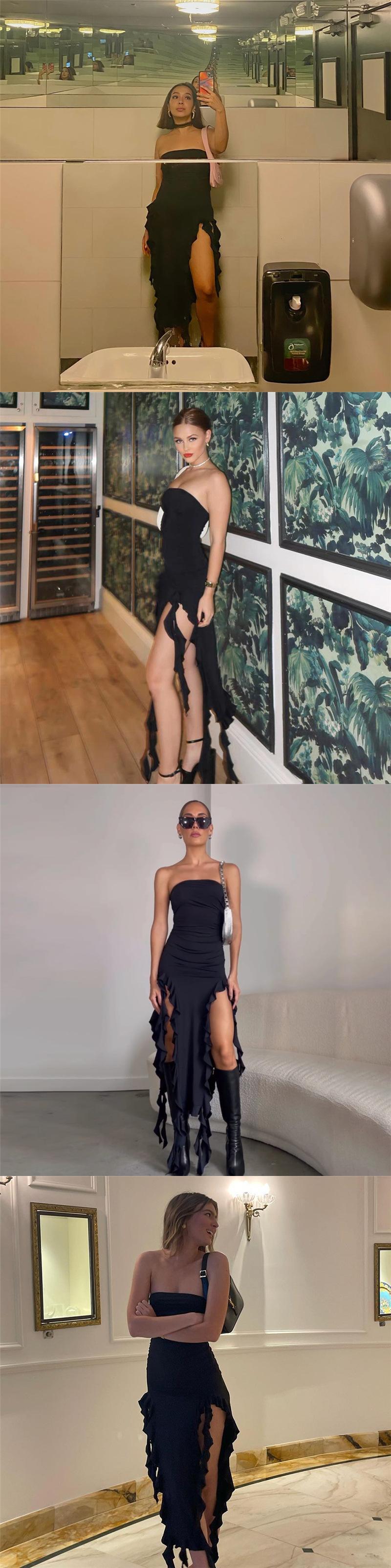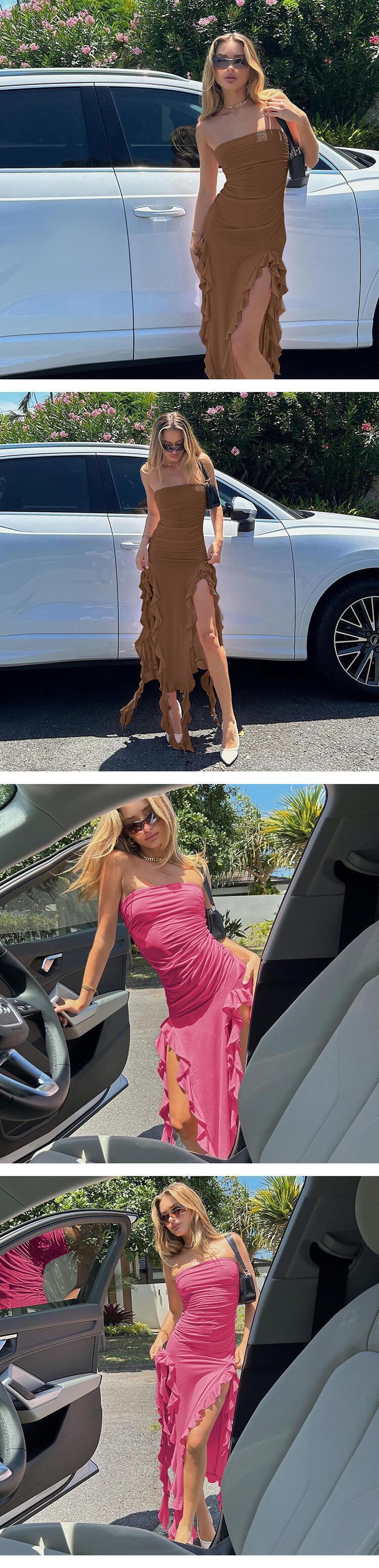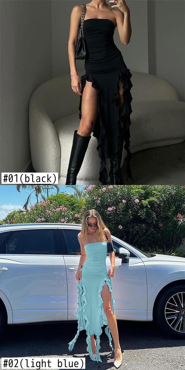 送料無料 暗号不規則なフリルオフショルダーセクシーな背中の開いたミディドレス女性の誕生日 Vestido 夏サンドレスシャーリング サマー 夏物 AE123565588789857573293