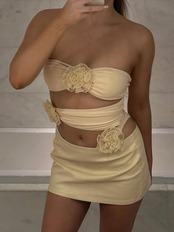 送料無料 暗号ホルターセクシーなノースリーブカットアウトボディスーツ女性夏花アップリケトップスワンピース上昇ボディスーツ服 サマー 夏物 花柄 AE123565588721635995044