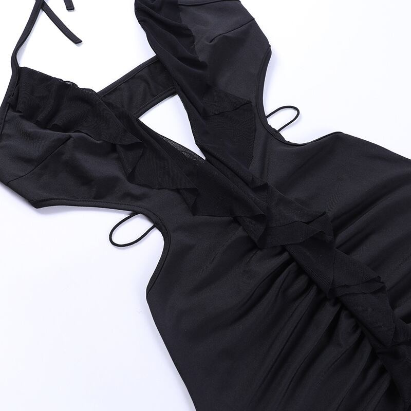 送料無料 暗号フリルホルター包帯セクシーなミニドレス女性ノースリーブバックレスカットアウトドレスクラブパーティー Vestido 服 ラッフル AE123565588741172400479