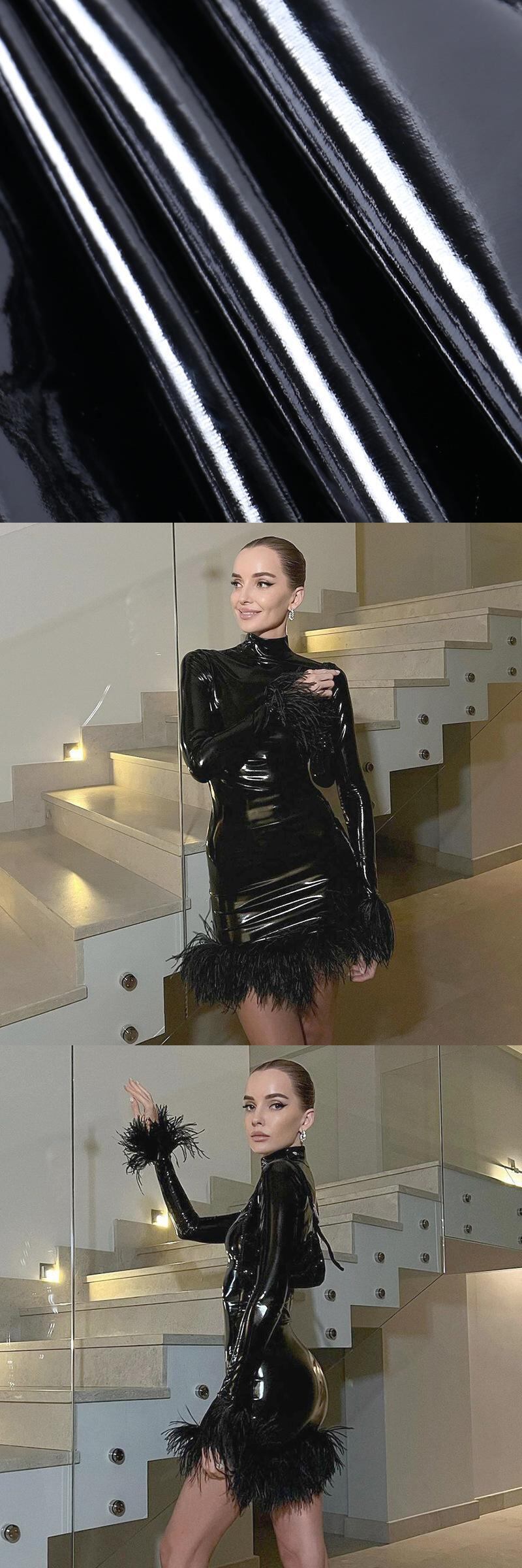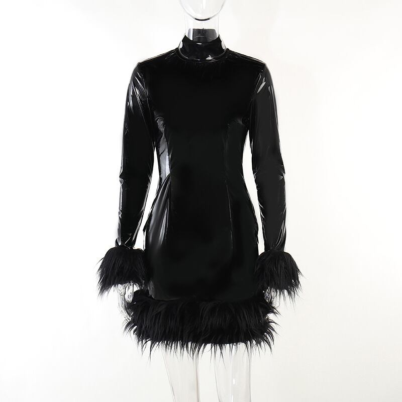 送料無料 暗号 2022 秋黒 Pu レザー羽ミニドレス女性の衣装セクシーなボディコンドレスパーティークラブ服 ブラック オータム 秋物 AE123565588735466801781