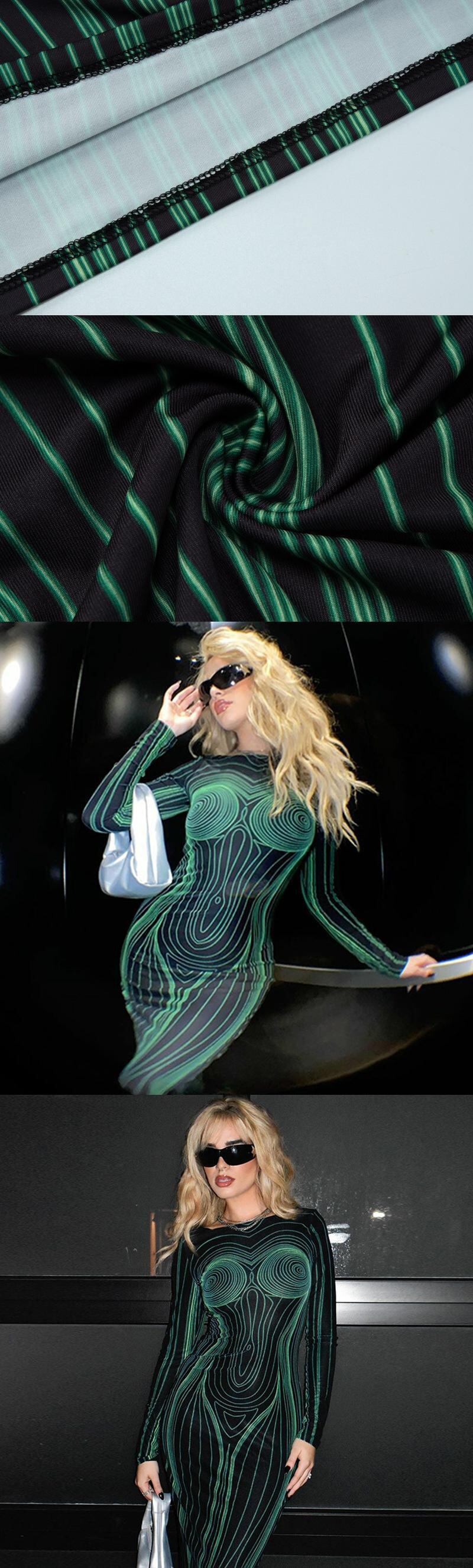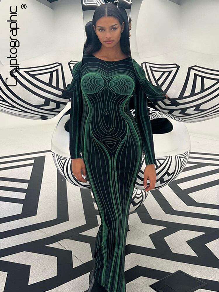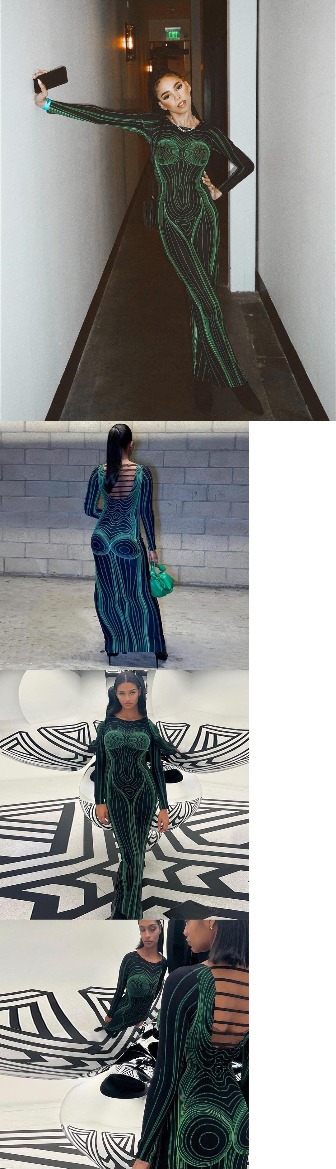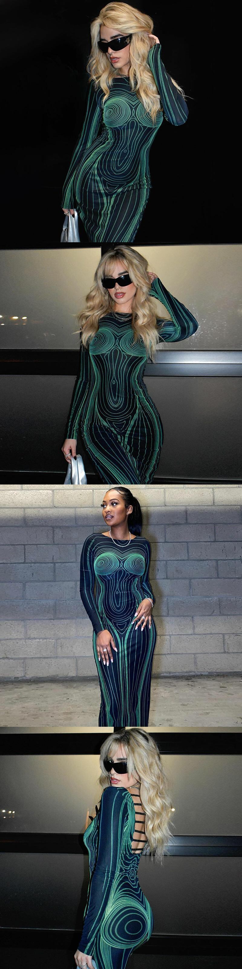 送料無料 暗号プリント長袖マキシドレス衣装女性のセクシーな背中の開いた包帯女性のドレス Vestidos 服 ロング AE123565588715157434923