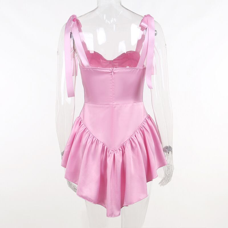 送料無料 暗号セクシーな背中の開いたフリル誕生日ドレス女性ウエディングサマーホリデーノースリーブコルセットミニドレス Vestido チュニック 夏物 AE123565588727288606893