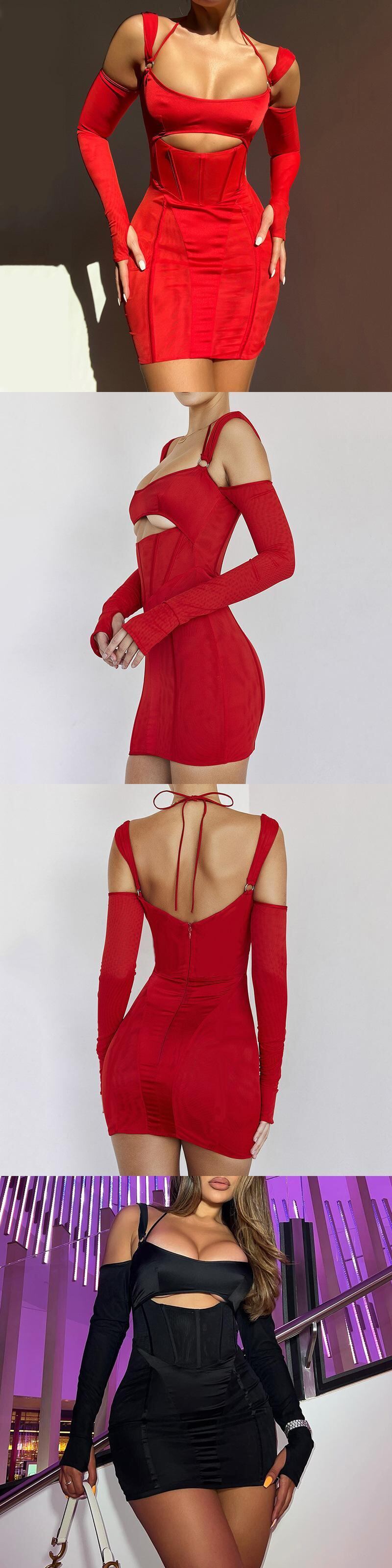 送料無料 暗号ホルターセクシーな背中の開いたカットアウトメッシュ薄手のコルセットミニドレス女性パーティークラブスリップボディコンドレスガウン AE123565588719231900575