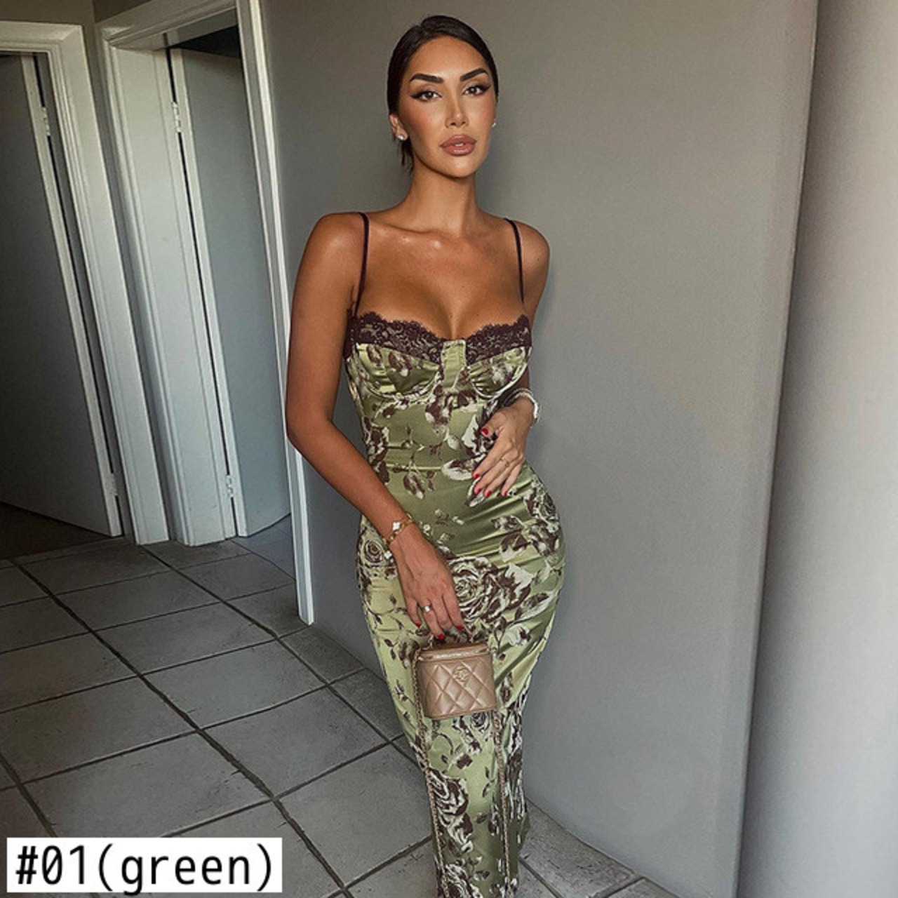 送料無料 暗号レースノースリーブスリップミディドレス夏服女性のセクシーな背中の開いたクラブパーティー花柄ドレス サマー 夏物 AE123565588713378625294