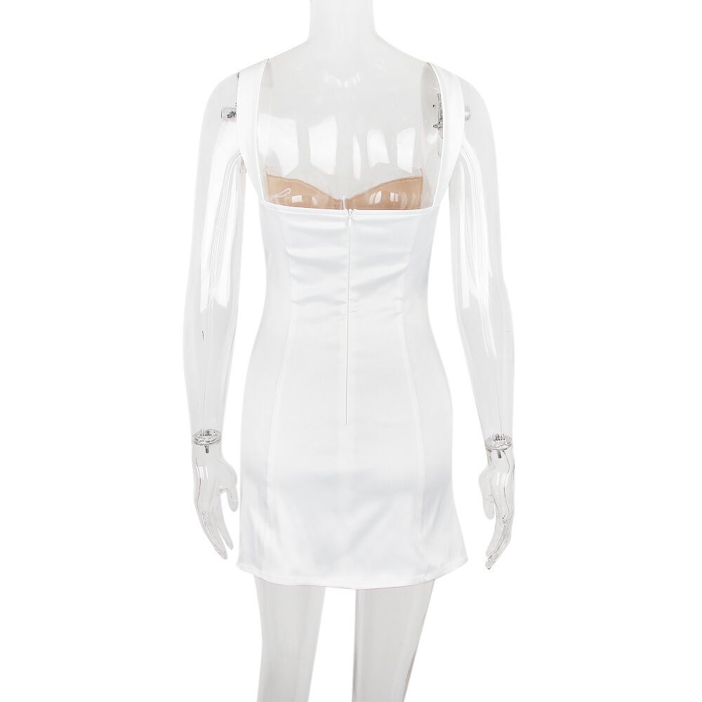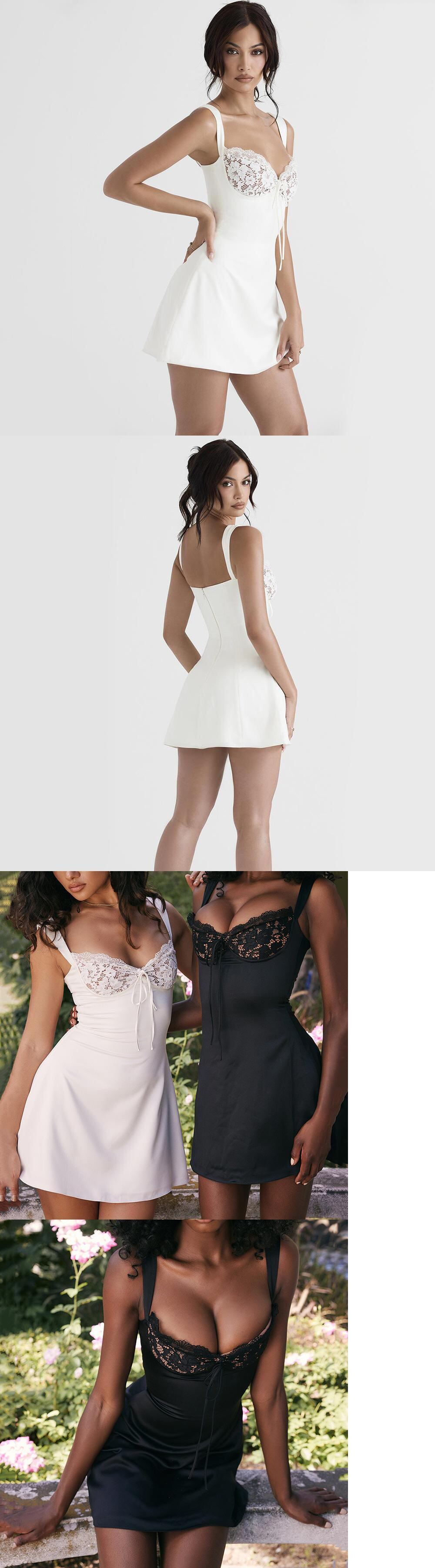 送料無料 暗号コケットサテンセクシーな背中の開いたレースミニドレスパーティークラブ衣装女性スリップノースリーブドレス服 AE12356558872310951739
