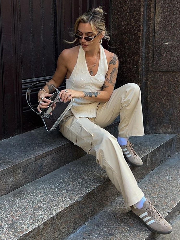 送料無料 暗号ニットセクシーな背中の開いたノースリーブクロップトップス女性 Y2k クラブパーティー白ホルタートップスリムストリート夏 ホワイト サマー 夏物 AE123565588726739409394