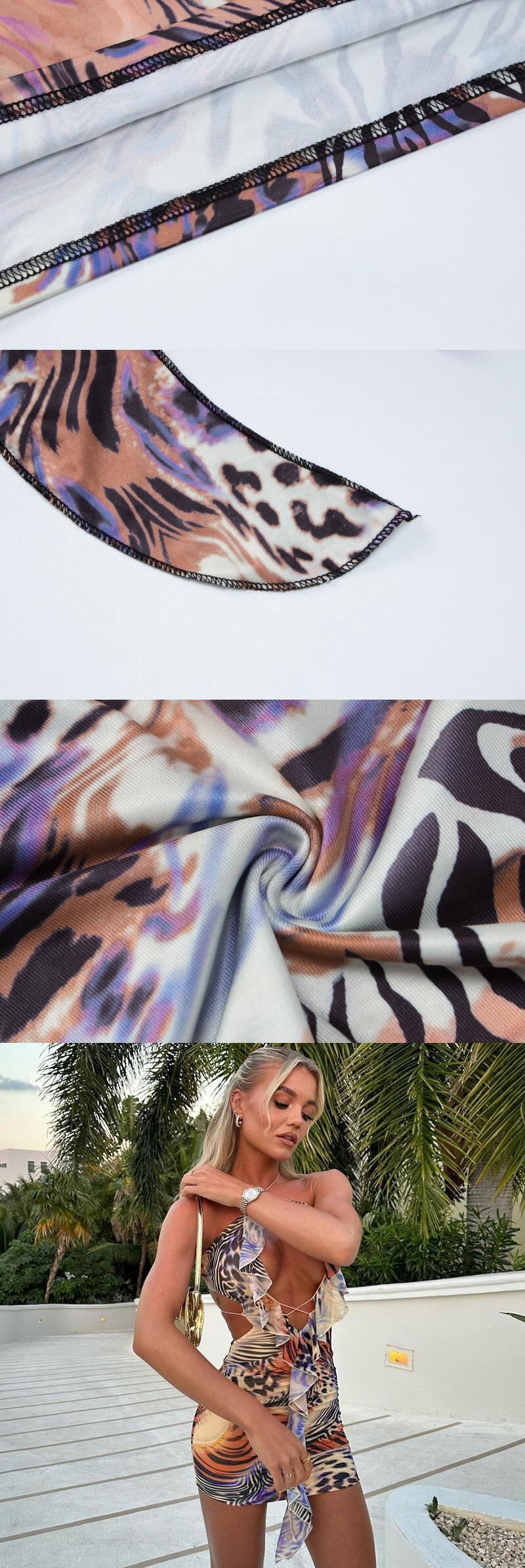 送料無料 暗号プリントホルターフリルミニドレス女性の夏のセクシーな包帯クラブパーティー背中の開いたボディコンドレス Vestido サマー 夏物 AE123565588731470916964