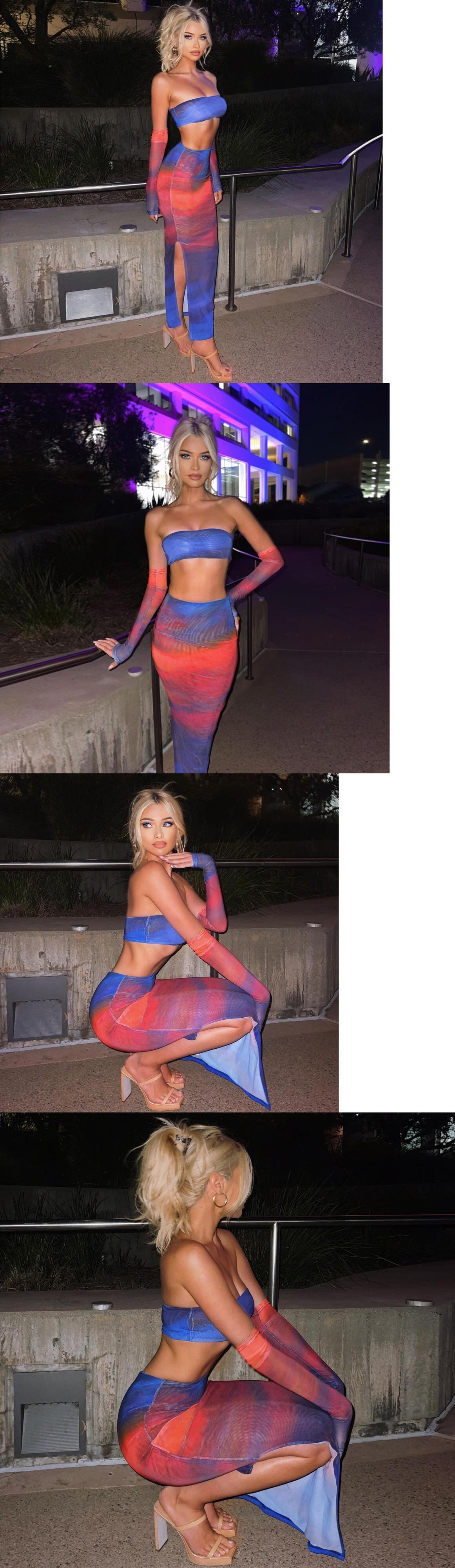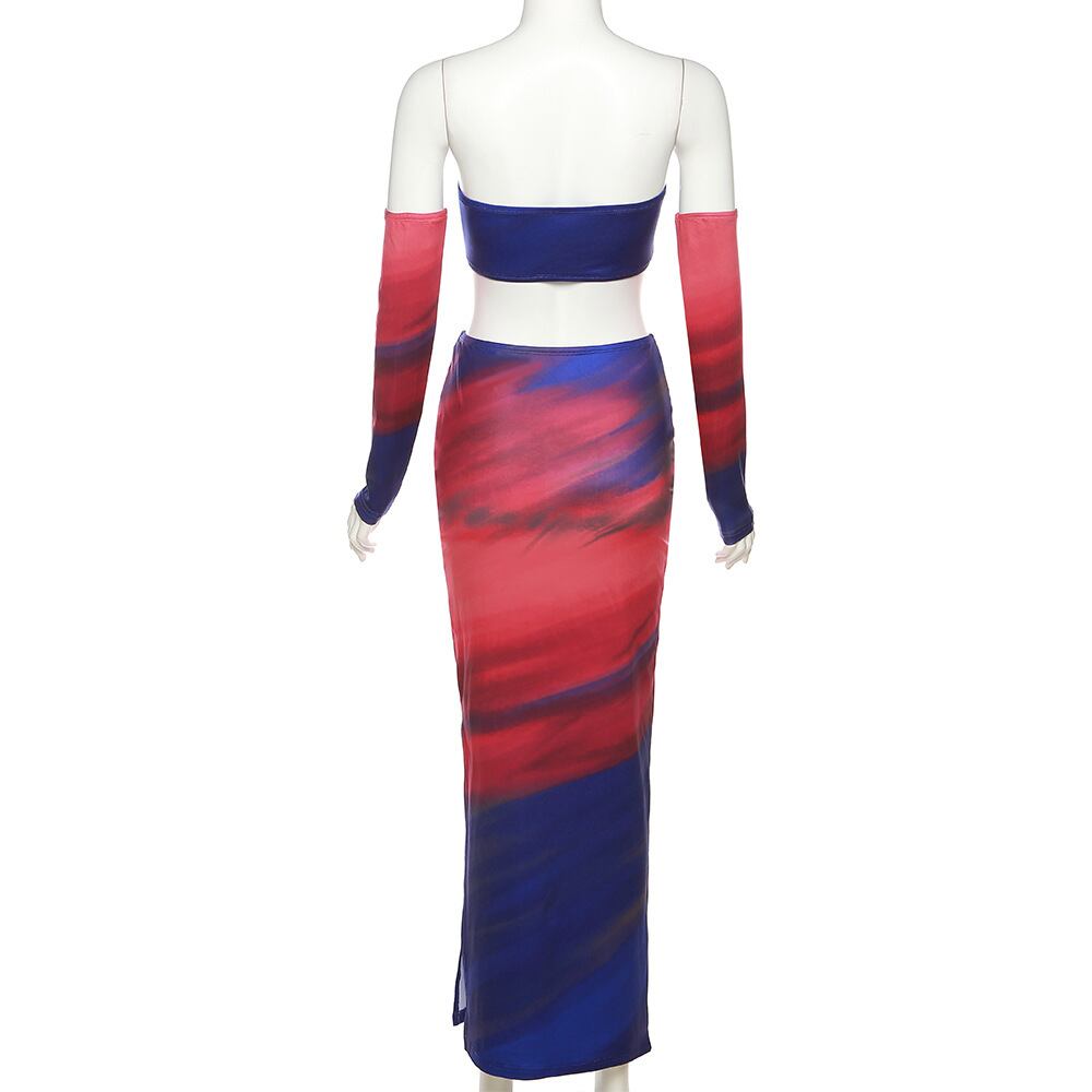 送料無料 暗号プリントセクシーなストラップレスのトップとスカートの衣装女性サマークラブパーティーマッチングセットコーデ服 夏物 AE123565588783089469894