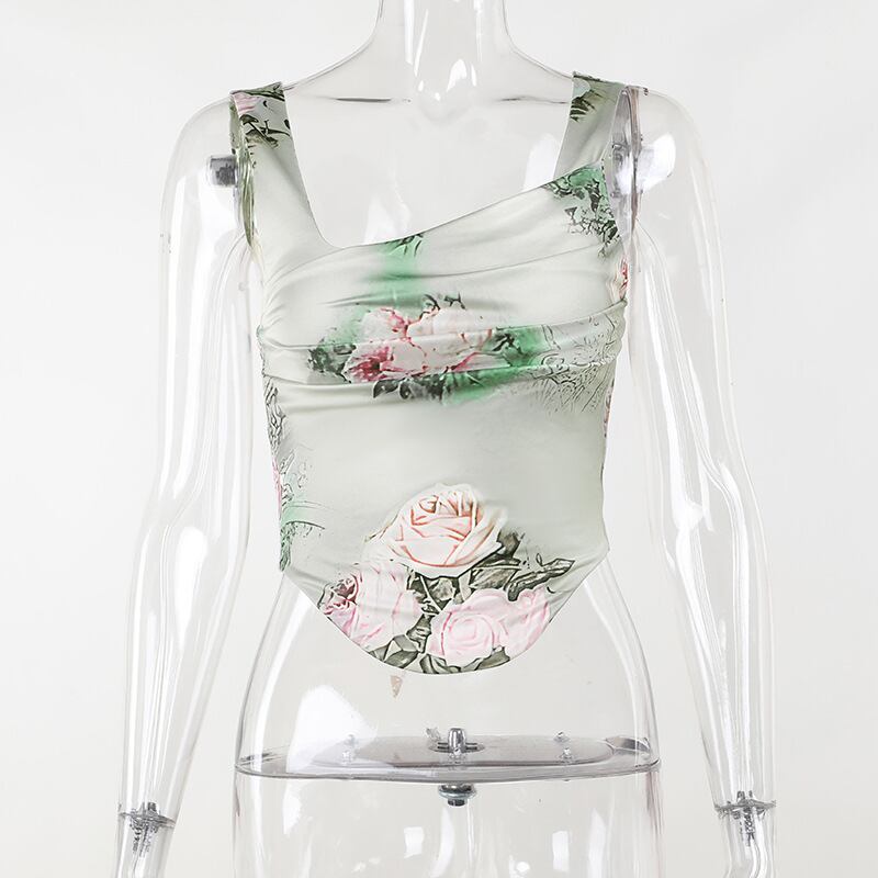 送料無料 暗号コテージコア花柄 2 ピーススプリットシャーリングドレスセット夏フェアリーコアグランジセクシーなコルセットトップとスカート サマー 夏物 AE123565588775505071266